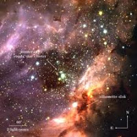 Nebula containing gaseous material to a temperature of about 10,000 degrees